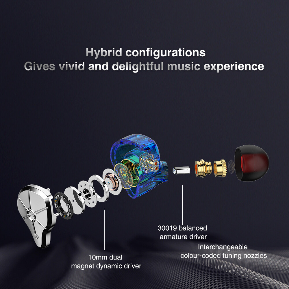 16.Driver unit: 1DD 1BA hybrid driver unit(10MM DD+custom 30019 BA)