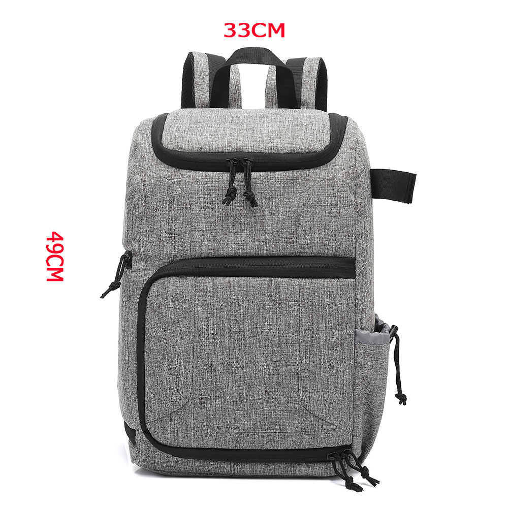 The camera knapsack is multi-functional to storage your cameras, accessories, computer, water bottle and other small thing. Waterproof material and large capacity, the knapsack is suitable for outdoors or travel. Also it can be fixed on the suitcase rod for its back belt.Features:One side pocket can put water bottle or camera rod, the other side can storage a camera.The back pocket can storage your flat computer.High-quality material, waterproof and durable.Inside compartment can storage cameras and accessories.Above pocket can put some small things for convenient take.Specifications:Material: PUColor: Grey, Blue, Red (optional)Item Size: 430 * 290 * 150mm / 16.93 * 11.42 * 5.91inItem Weight: 660g / 23.28ouncesPacking List:1 * Camera Knapsack