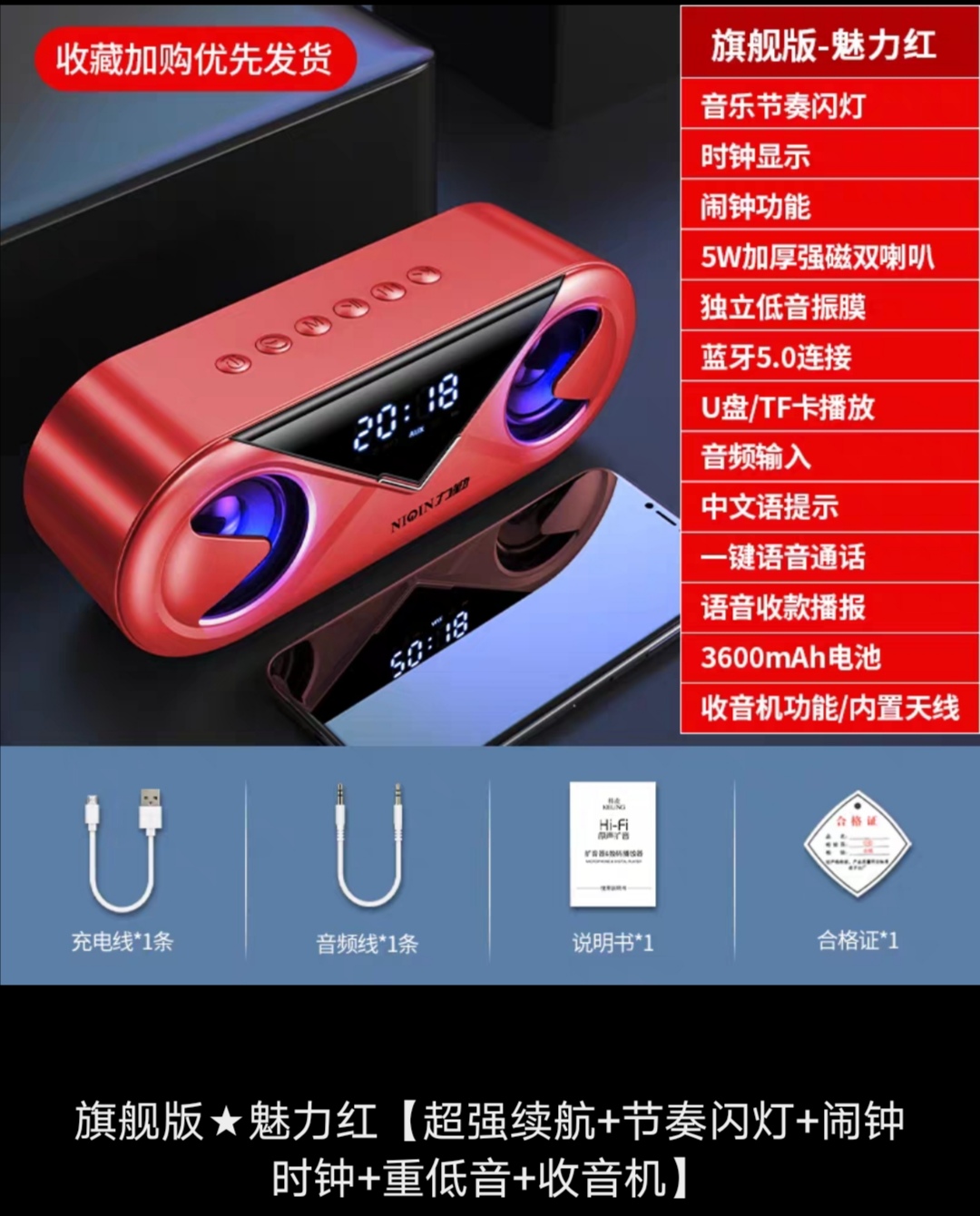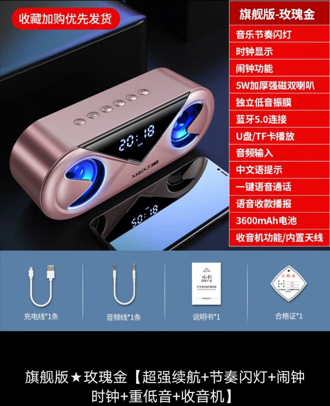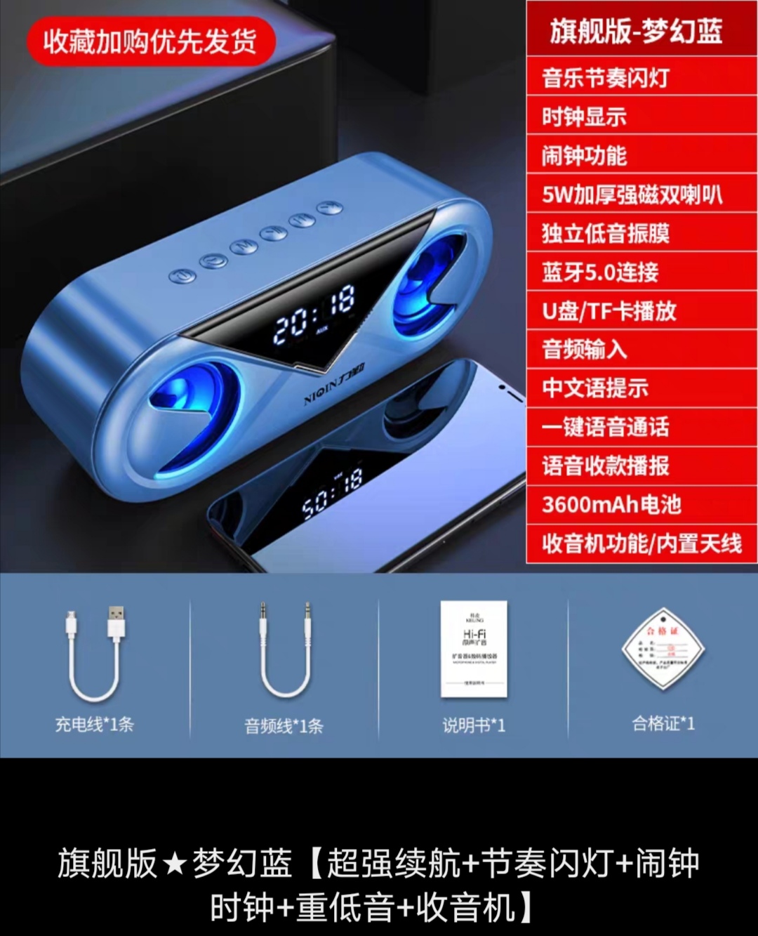[SG Seller] Liqin Wireless Bluetooth Speaker High Volume Home Alarm Clock Audio 3D Surround Dual Speaker Mobile Phone Overweight Subwoofer Small Portable Outdoor Payment QR Code Payment Voice Broadcas
