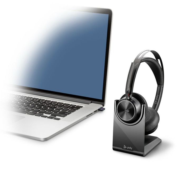 Poly Voyager Focus 2 UC ANC Wireless Bluetooth Headset, USB-A delivers crazy good stereo sound for calls, media and music. It features an ultra-comfortable headband for all day use with up to 19 hours of talk time. It's Poly's best noise reduction headset yet. Now you can work wherever.