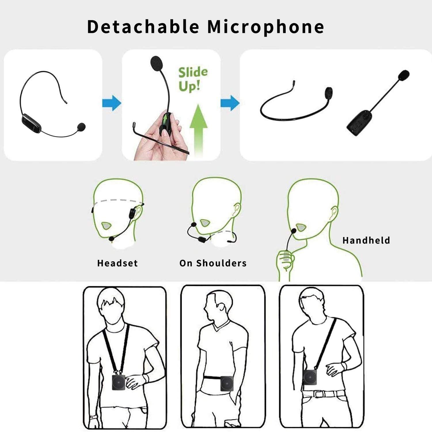 The voice amplifier is not only a nice voice saver which with super 10 Watts output, provides a clear, natural and crystal voice, sounds coverage up to 10000 square feet and ideal for a small or large group of 40-100 people.