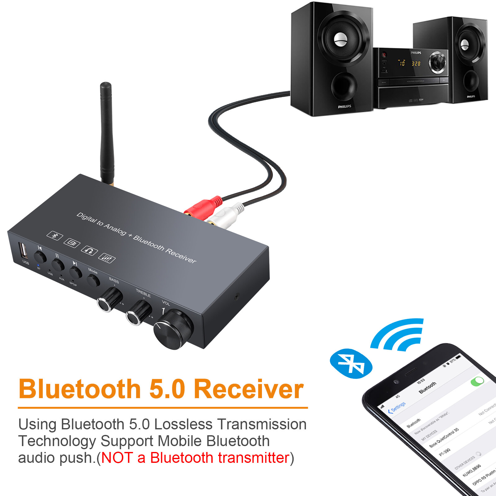 This digital to analog audio converter is specially designed for either home or professional audio signal switching. It converts coaxial, Toslink digital audio, stereo audio or Bluetooth signals to analog stereo audio signal. It is also a digital music player with USB flash drive input supporting MP3,WAV,APE,FLAC and WMA lossless formats.
