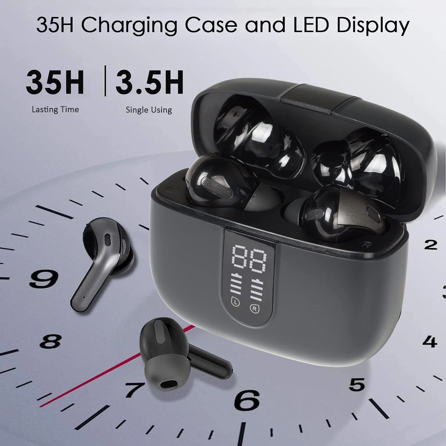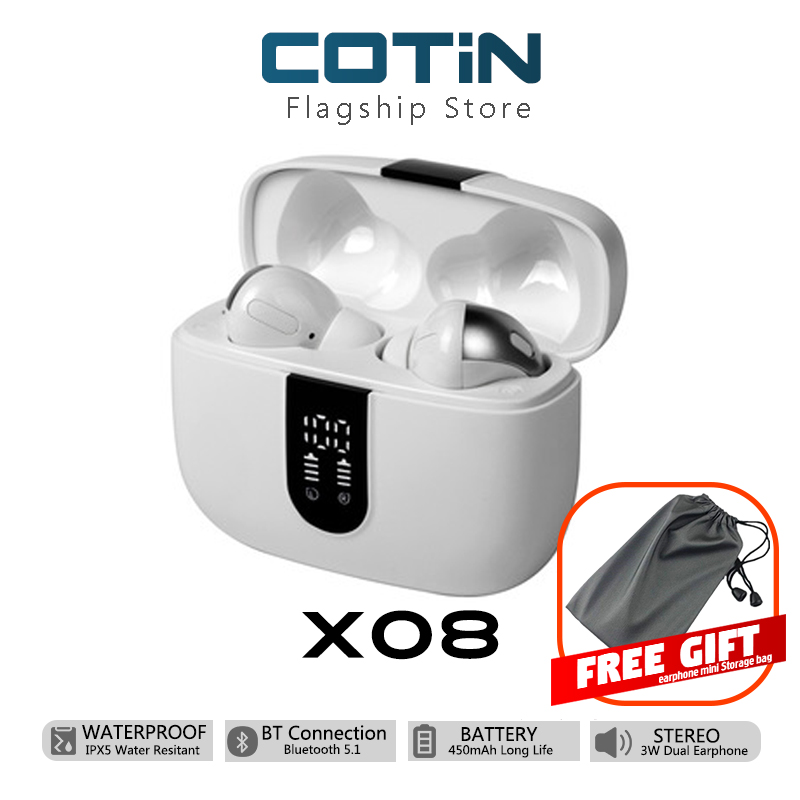 【2022 NEW】COTIN X08 Bluetooth Headphones True Wireless Earbuds 60H Playback LED Power Display Earphones with Wireless Charging Case IPX5 Waterproof in-Ear Earbuds with Mic for TV Smart Phone Computer