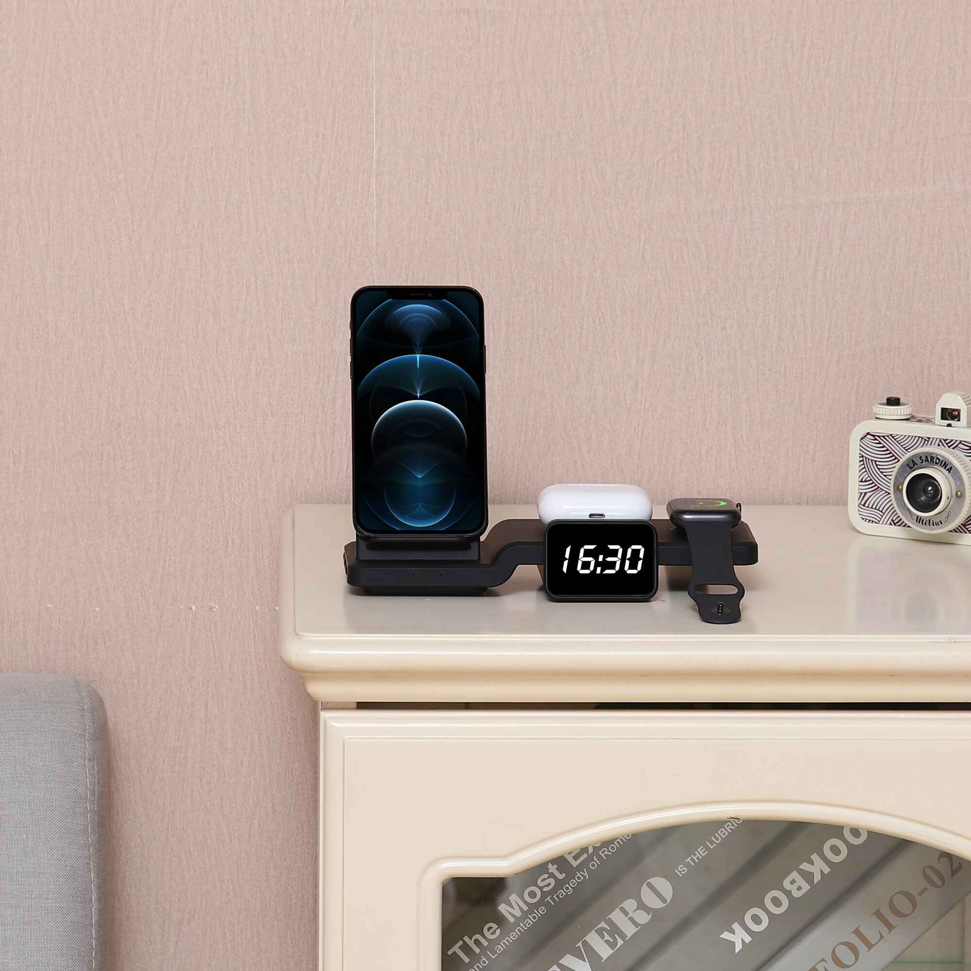 5 in 1 with Clock Time Display Wireless Charger Fast Charging Dock Station For iPhone 13 pro max 12 11 AirPods Pro 1/2/3 iWatch 6 5 4 3 2 1 SE Samsung S20 Wireless Charger Stand