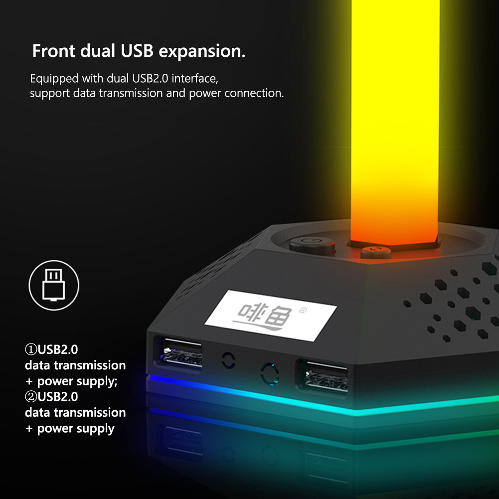RGB Gaming Headphone Stand 12 Light Modes Headset Holder Bracket Universal Headphones Hanger Hollow Translucent Base Dual USB2.0 Expansion Interface 3.5mm Audio