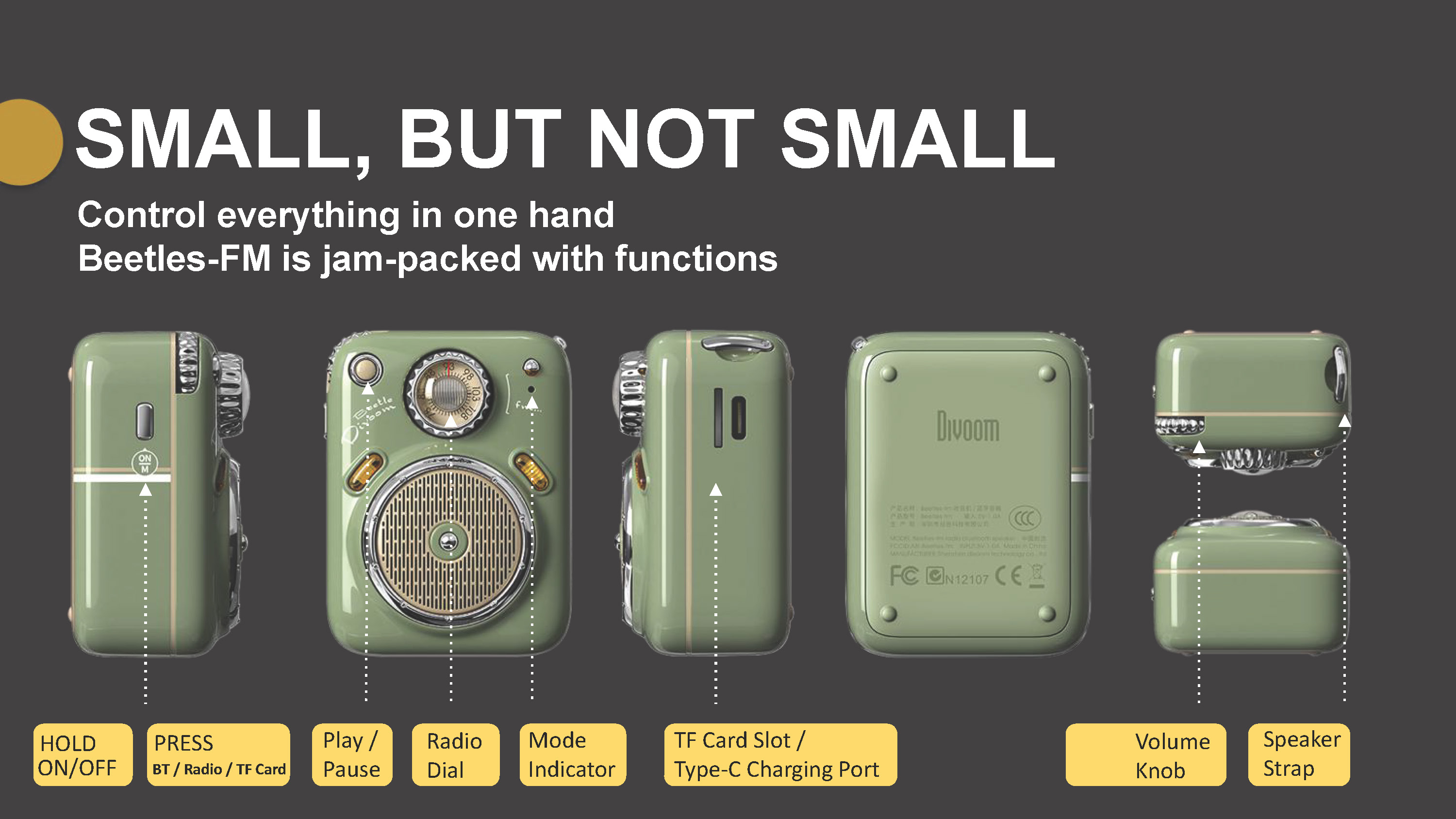 (NEXT DAY DELIVERY) Divoom Beetle FM Radio Bluetooth 5.0 Speakers with Micro SD Card slot