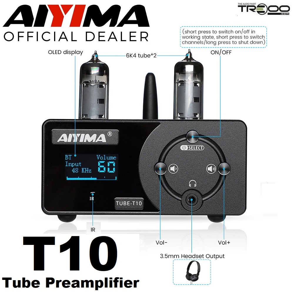 AIYIMA TUBE-T10 (T10) Wireless Bluetooth Receiver/Streamer, Coaxial / Optical / USB DAC & Tube Preamplifier (Official local stock - SG/UK plug)