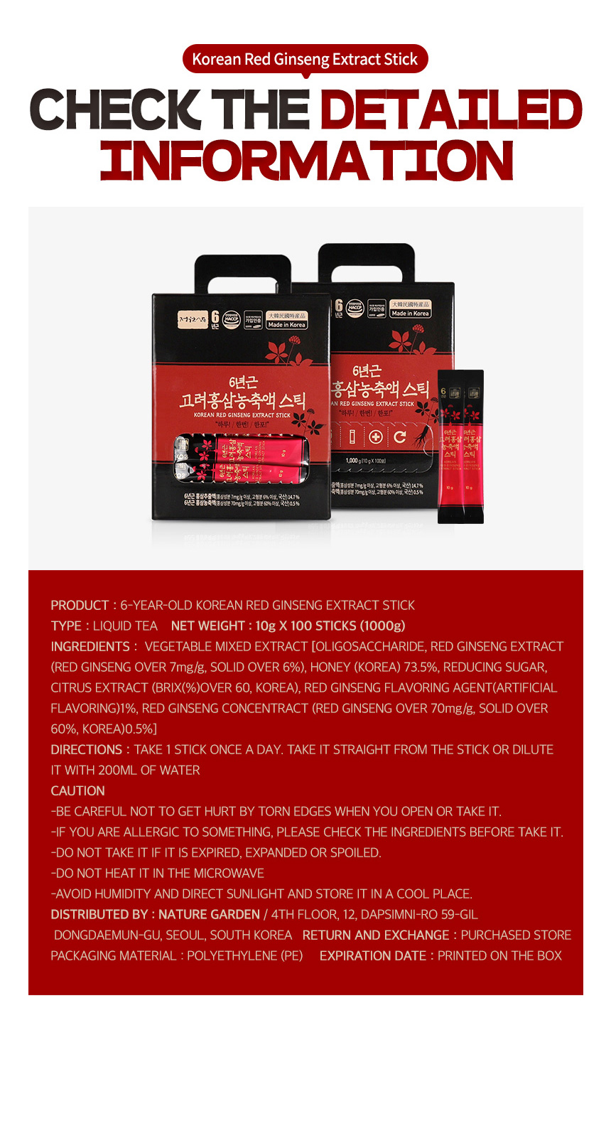 [BUY 1 FREE 1] JUNGWONSAM Korean 6 Years Red Ginseng Extract Stick Korean Food Extract Evertime Improving Immunity (10gX100sticks)X2