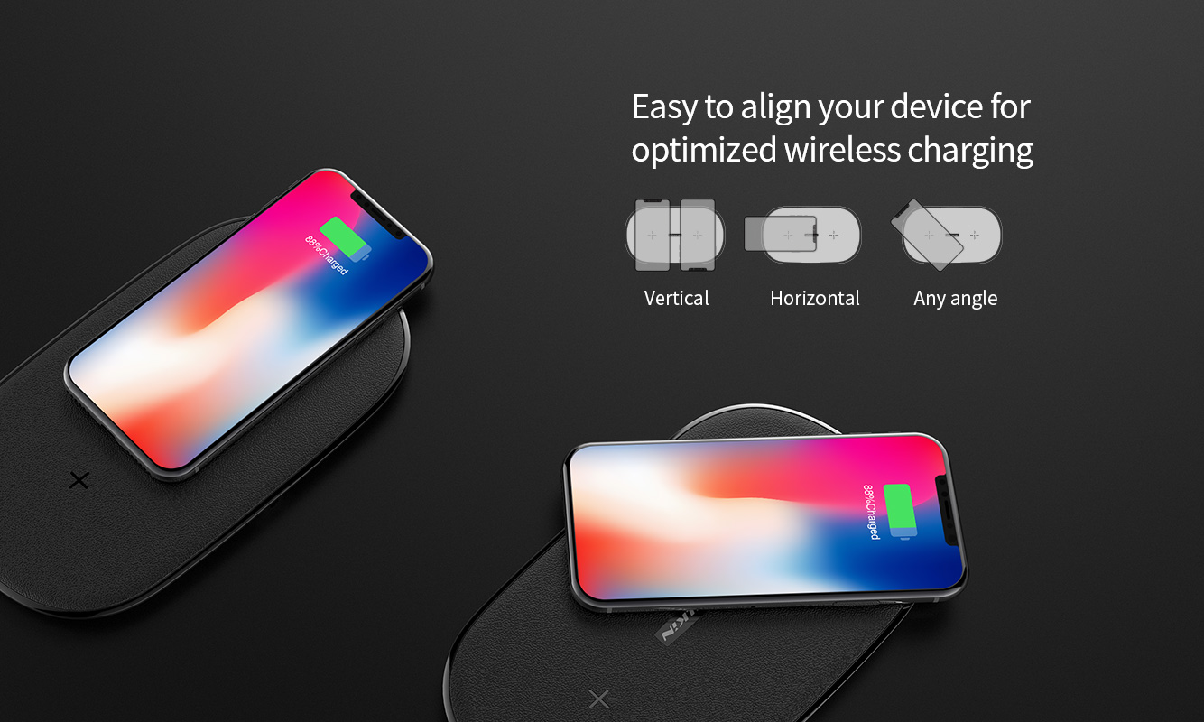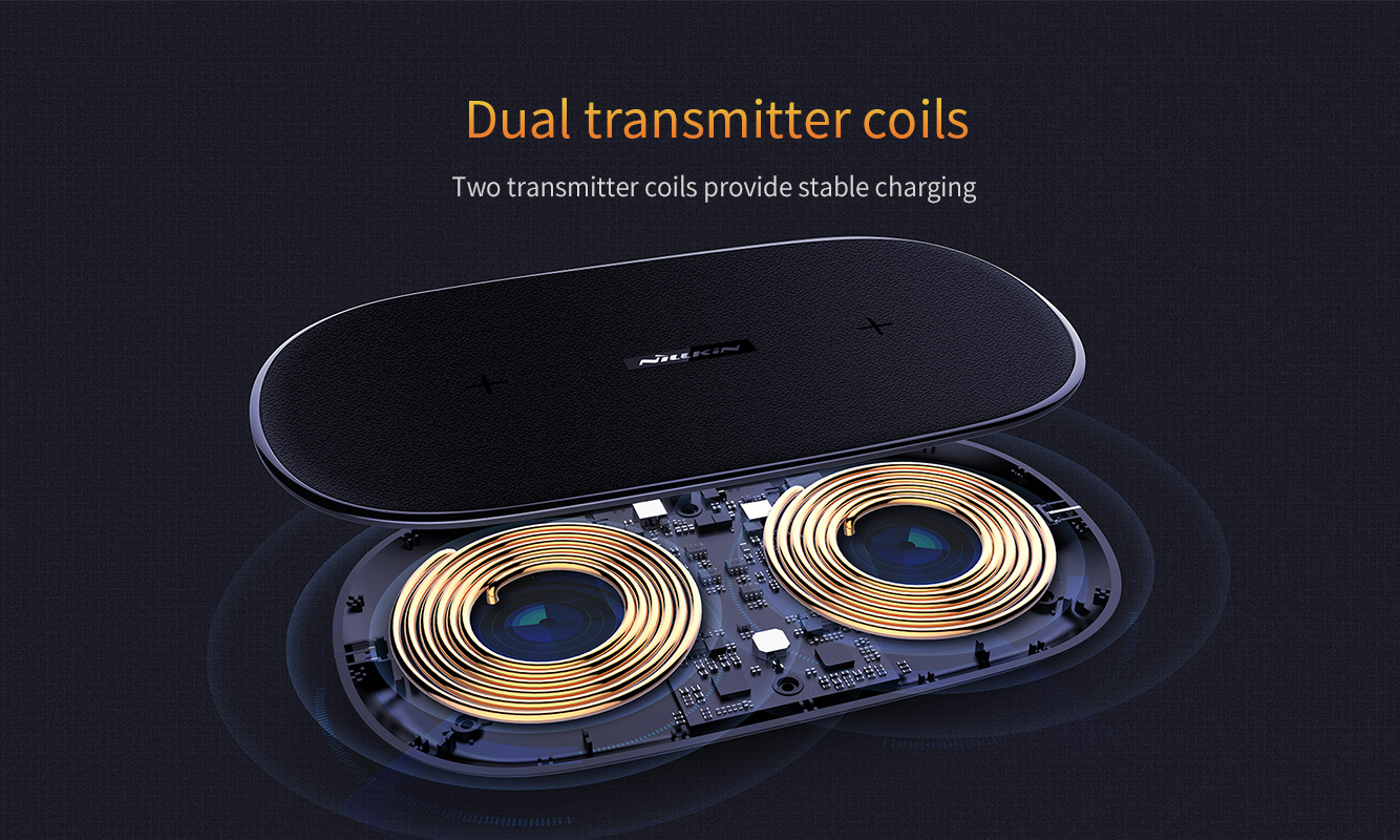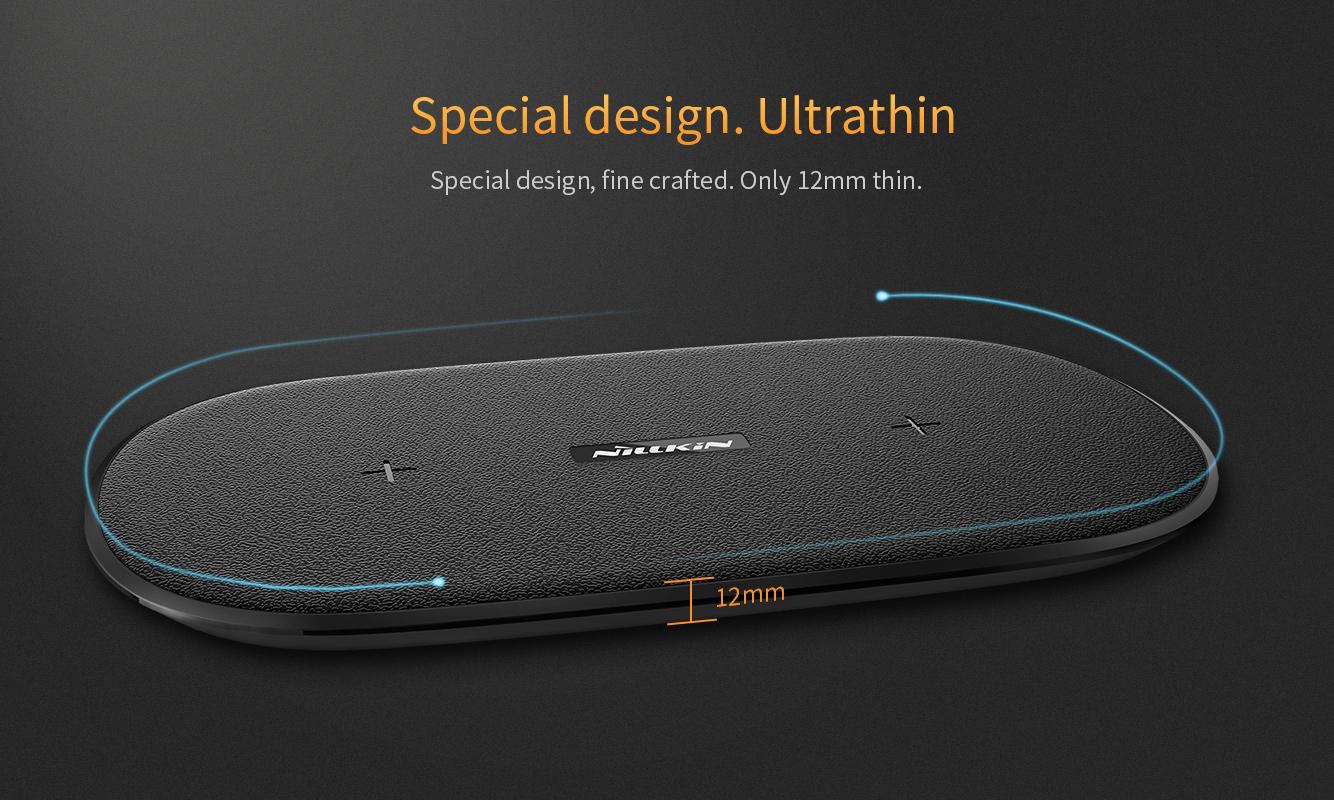 Nillkin Gemini Dual Wireless Fast Charging Charger - High Speed 10W Portable Slim Black Intelligent Sleek Charge 2 At 1 Time Faster Special Design Ultrathin 12mm thickness Leather Office Home Non Slip