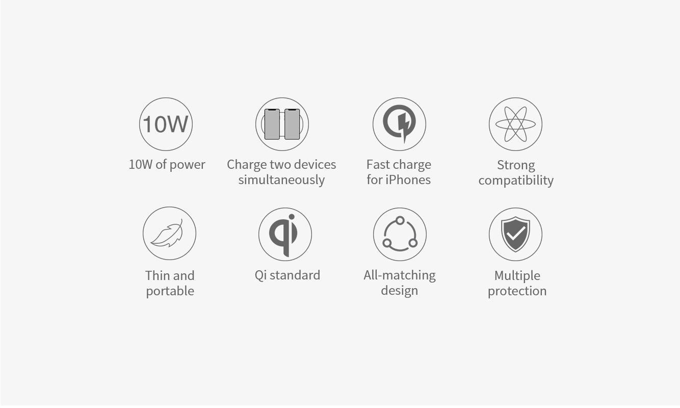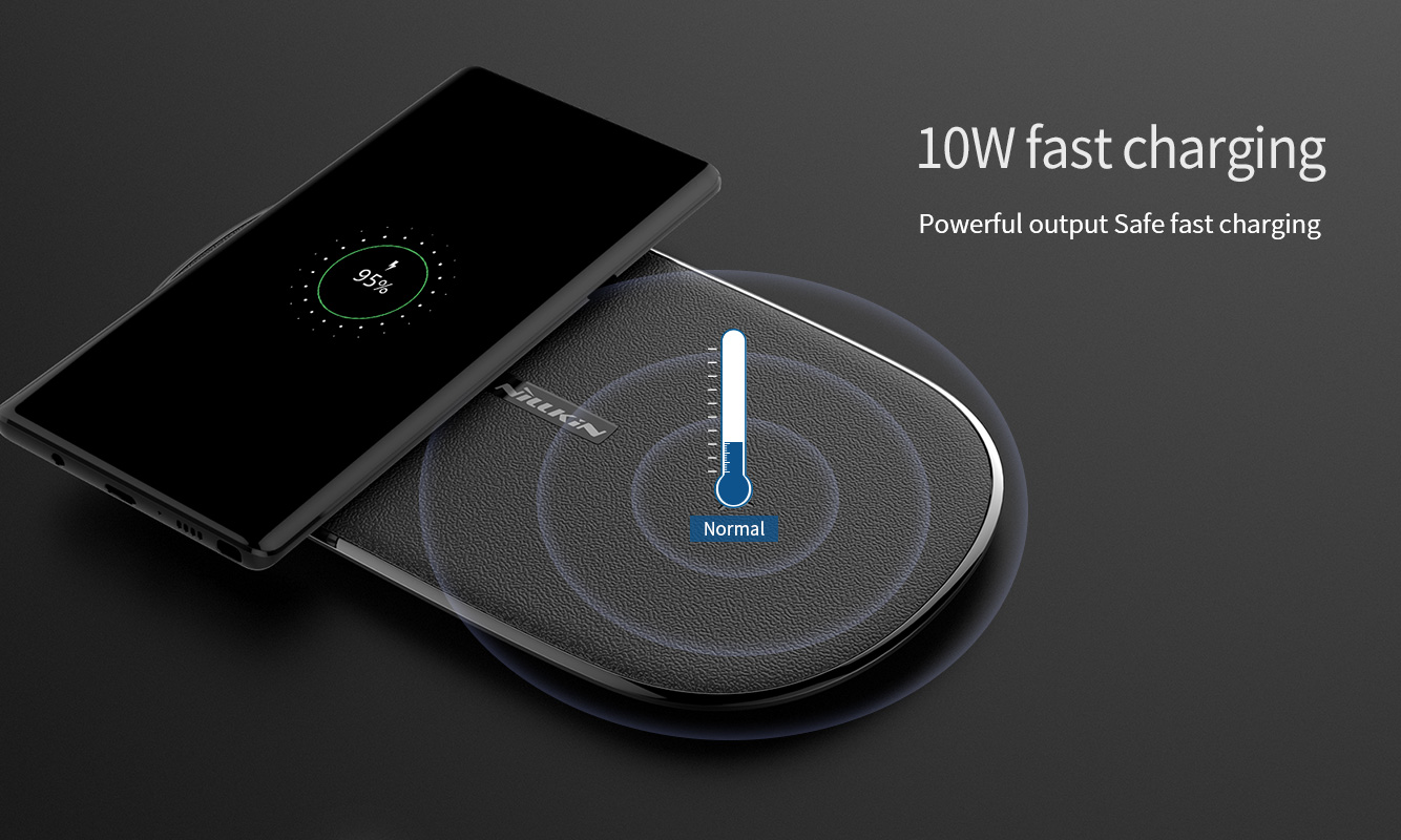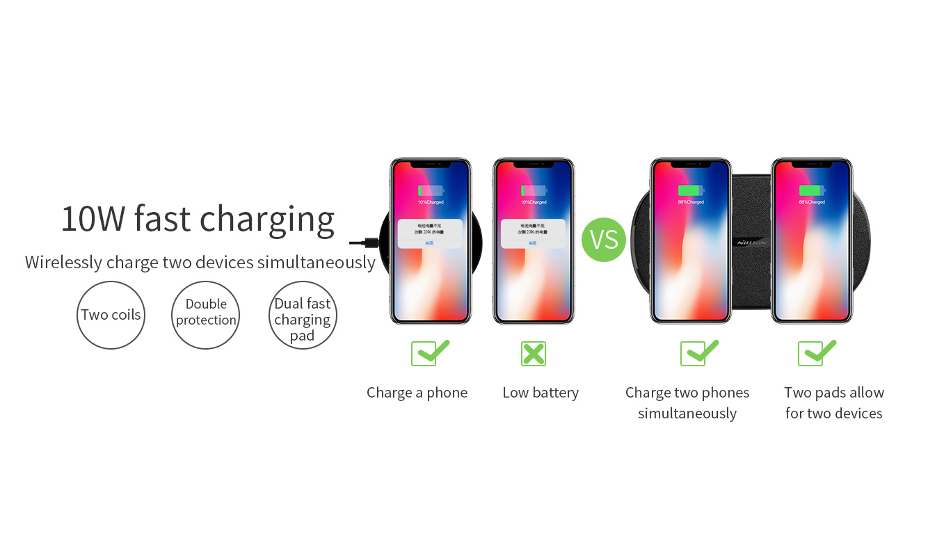 Nillkin Gemini Dual Wireless Fast Charging Charger - High Speed 10W Portable Slim Black Intelligent Sleek Charge 2 At 1 Time Faster Special Design Ultrathin 12mm thickness Leather Office Home Non Slip