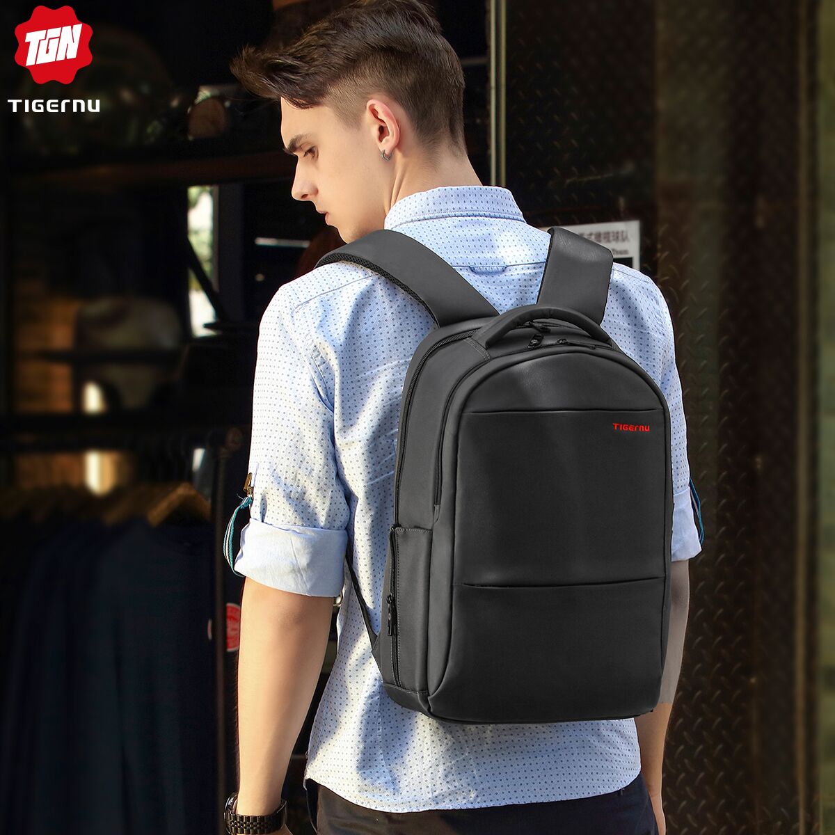 Tigernu Size M 15Inches Travel Business Daily Waterproof backpack For 15.6 Inch Laptop bag school bagT-B3032A(black)
