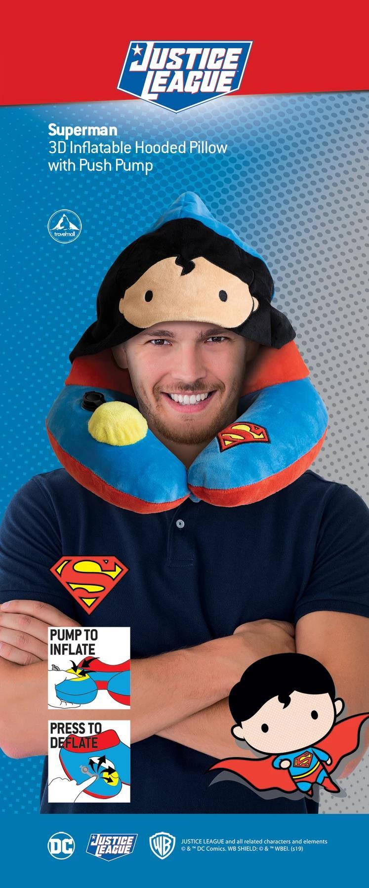 Justice League Kid's 3D Pump Pillow with Foldable Hood (Superman)