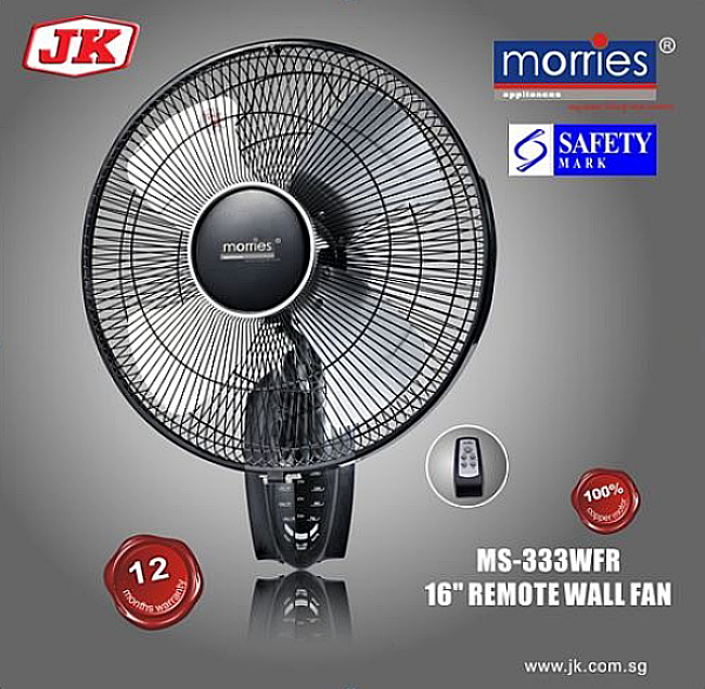 Morries 16 Inches Blade Fan Wall Fan W/Remote Control MS-333WFR